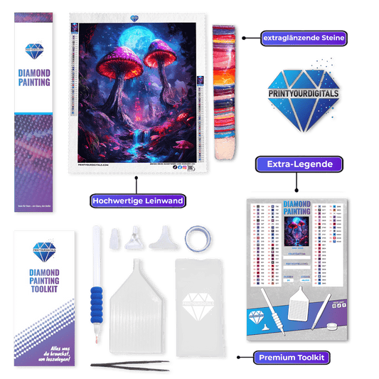 AB-SteineFeenstaubsteine+1Diamond Painting – Mondschein Pilzwald
