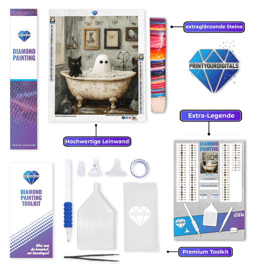 AB-SteineFeenstaubsteineDiamond Painting – Geisterbad und Samtpfote