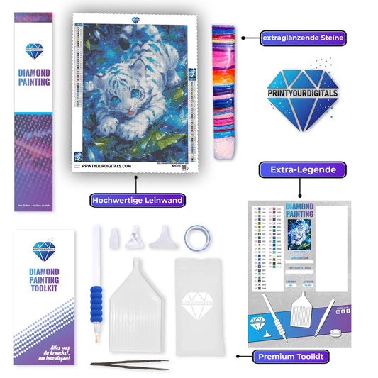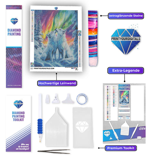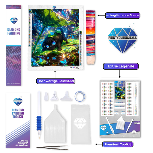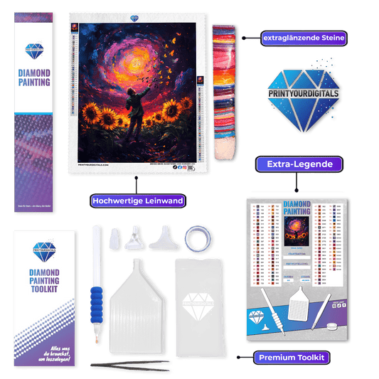 Diamond Painting ist eine kreative und entspannende Basteltechnik, bei der kleine, funkelnde Steinchen (Diamanten) auf eine selbstklebende Leinwand gesetzt werden. Das Motiv ist vorgedruckt und mit Symbolen markiert, sodass die passenden Diamanten einfach aufgesetzt werden können – ähnlich wie Malen nach Zahlen.