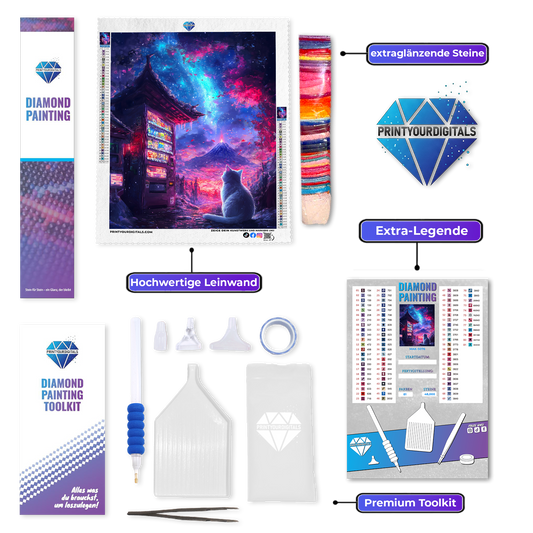 AB-SteineFeenstaubsteineDiamond Painting – Mystische Nachtkatze