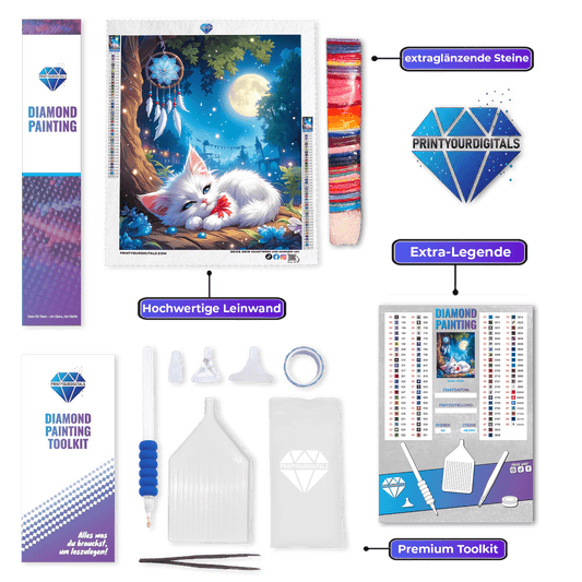 AB-SteineFeenstaubsteineDiamond Painting – Mondlicht Kätzchen