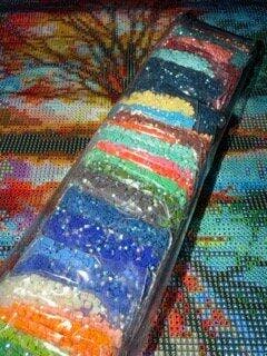 Instead of painting with paints, you place small, sparkling stones onto a self-adhesive canvas.